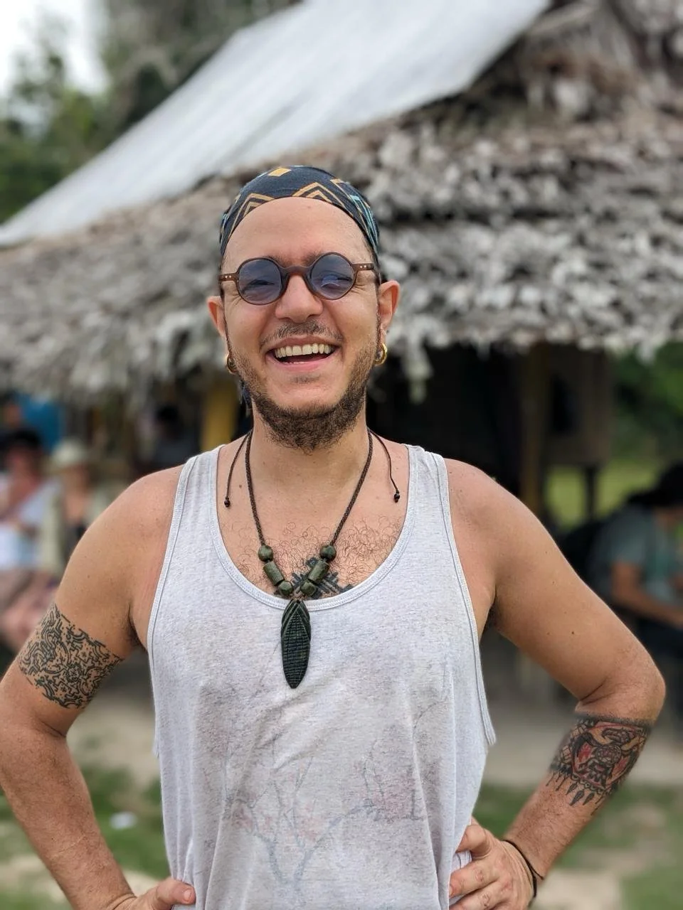 Seeking deeper knowledge, I traveled to the Amazon to train with the Noke Koi (Katukina) people, learning their indigenous Kambo methods, traditional songs, and complementary medicines such as rapé and sananga. I now serves Kambo medicine with a holistic approach that blends these indigenous traditions with my expertise in somatic therapy. I also incorporate energetic cleansings and tools like tarot reading to support a comprehensive healing experience.”